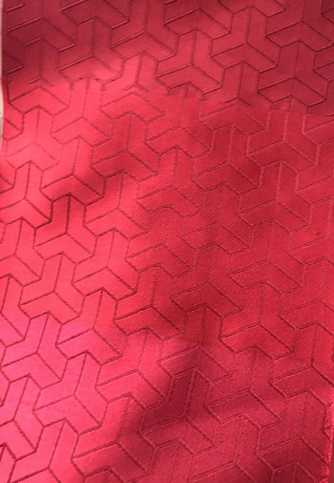 外衣面料采用锁甲纹提花织造,使红色上衣更加有质感,锁甲环环相扣,具有坚不可破寓意,象征出征的战士。