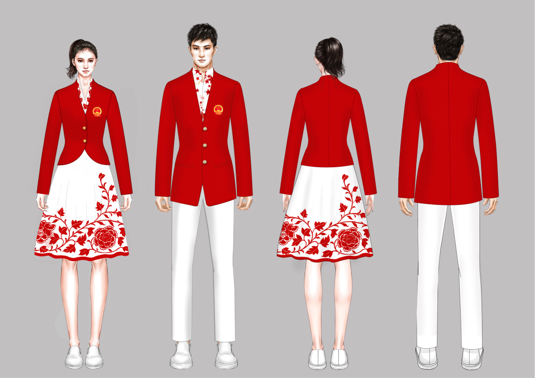 在整个设计过程中,设计团队不断汇集领导、专家、运动员、媒体工作者多角度的审评意见,全面分析东京7-8月份的天气状况、热度湿度、运动员入场后的停留时间、入场行进动作分析等要素。在样衣制作环节,设计团队也得到了企业的鼎力支持。无数次的视频会议,一个个细节的反复确认,从颜色的色相明度的微调到面料材质、手感、穿着效果的反复测试,严格把控每个环节的服装品质,确保穿着舒适和呈现效果。