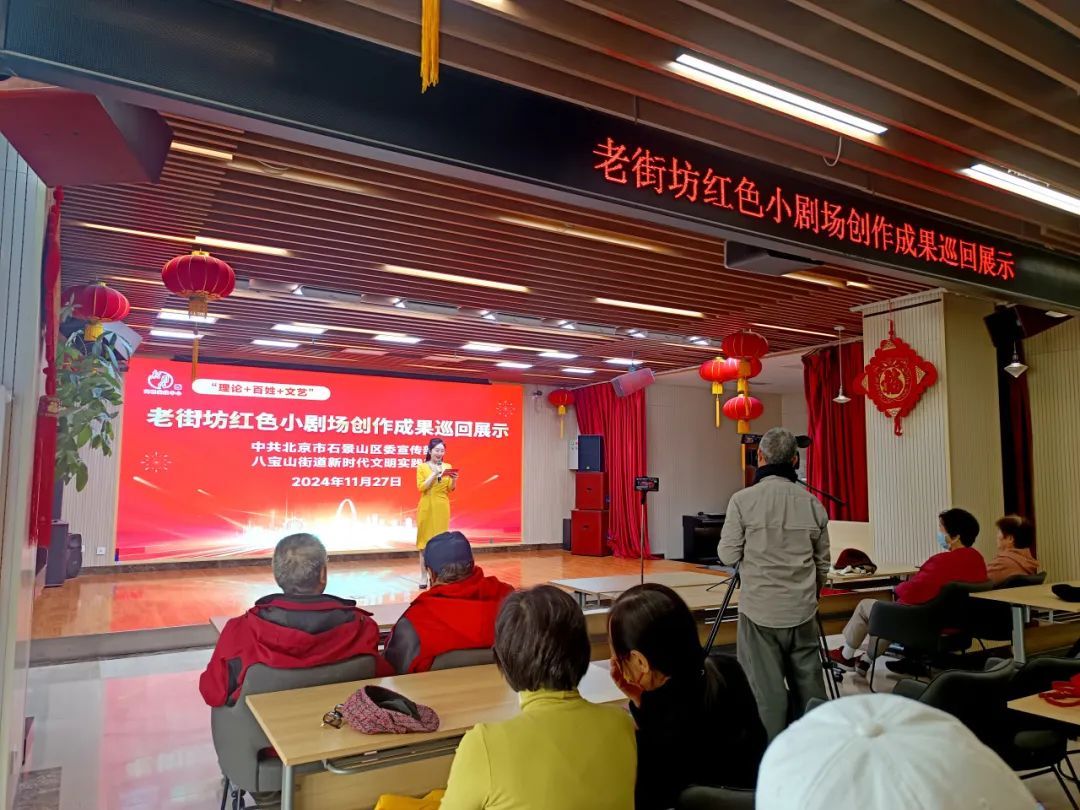 为进一步赓续红色血脉,丰富地区居民精神文化生活,近日,石景山区委宣传部联合八宝山街道新时代文明实践所举办了“老街坊红色小剧场”展演活动。此次演出通过“理论+百姓+文艺”的形式,让地区群众在家门口过足“戏瘾”。