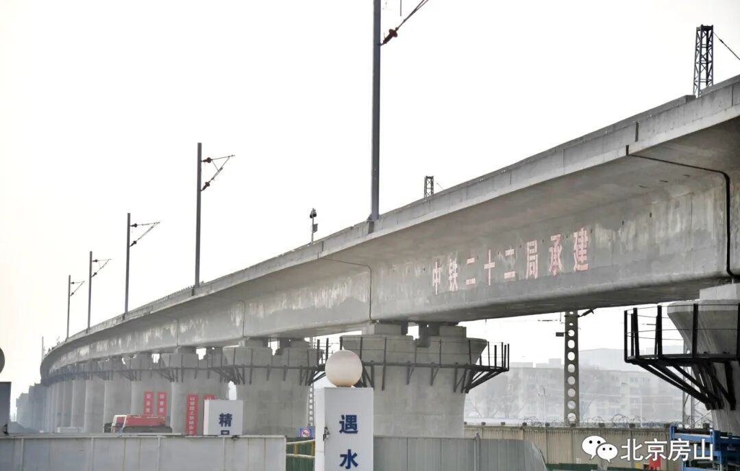 据了解,该特大桥是市郊铁路城市副中心线西延工程的关键组成部分,桥梁需近距离穿越繁忙的京广铁路干线,同时跨越两条河流与交通繁忙的长阳路。建设单位克服安全风险高、场地受限等诸多挑战,科学组织施工,推进工程进展。除特大桥主体完工外,房山东站站房主体结构已全部建成,良乡站信号综合楼、宿舍综合楼等配套设施也已完成主体施工,正逐步进入设备安装与装饰装修阶段。