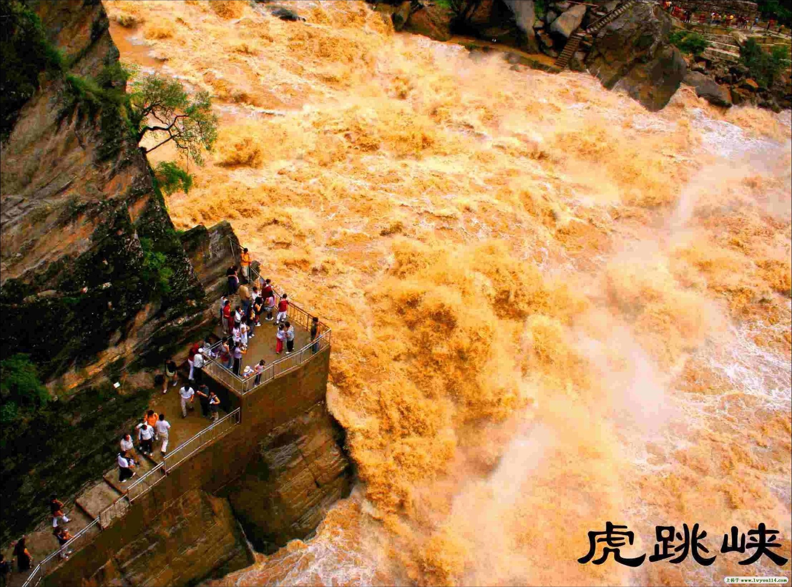 [6]【虎跳高峡】指虎跳峡,位于丽江城北55公里处玉龙雪山和哈巴雪山之间的金沙江段,有“万里长江第一峡”之称;两岸雪山银峰刺天,悬崖绝壁紧紧夹着奔涌咆哮的江流,最大高差达3700多米,江流最窄处仅20米左右,形成了“万仞绝壁万马奔,一线天盖一线江”的旷世奇观。