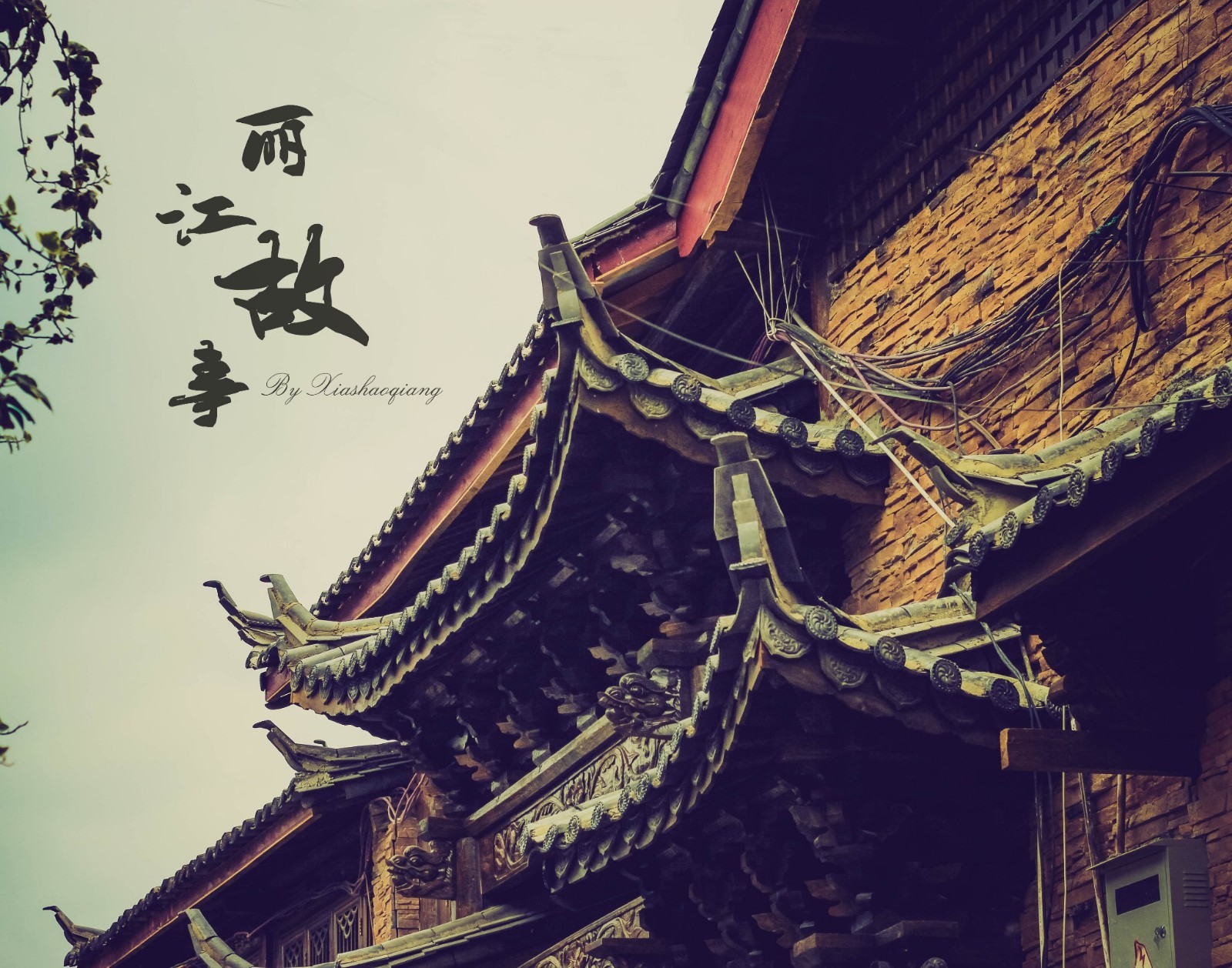 [33]【跨河楼晴川历历】【鳞瓦屋垂柳依依】跨河楼:跨水而筑的楼房。晴川:晴日下的河流。鳞瓦屋:富有民族特色的瓦屋面房屋。