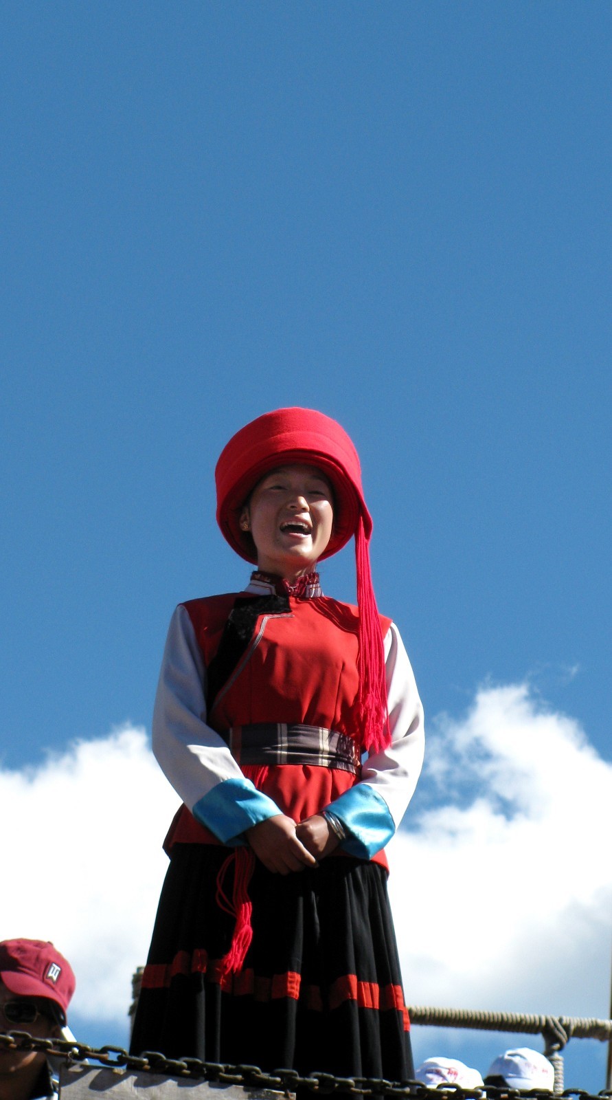 [21]【崇黑尚白,鹊窝帽男装效汉;披星戴月,百褶裙羊皮护肩】纳西族的服饰比较崇尚黑色和白色。男装仿效汉族男子的着装,只是喜戴喜鹊窝帽。女装最大的特色是肩披“七星羊皮”,上面横镶一道黑氆氇或毛呢,再钉上一字横排的七个五彩圆形图案,象征“披星戴月”,以示勤劳;大研女子腰系用黑、白、蓝等色棉布缝制的百褶围腰,上打百褶,从腰至膝,形如扇子,摩梭女子则喜着十分宽大的袭地百褶长裙。