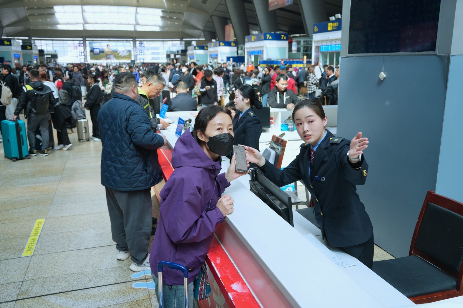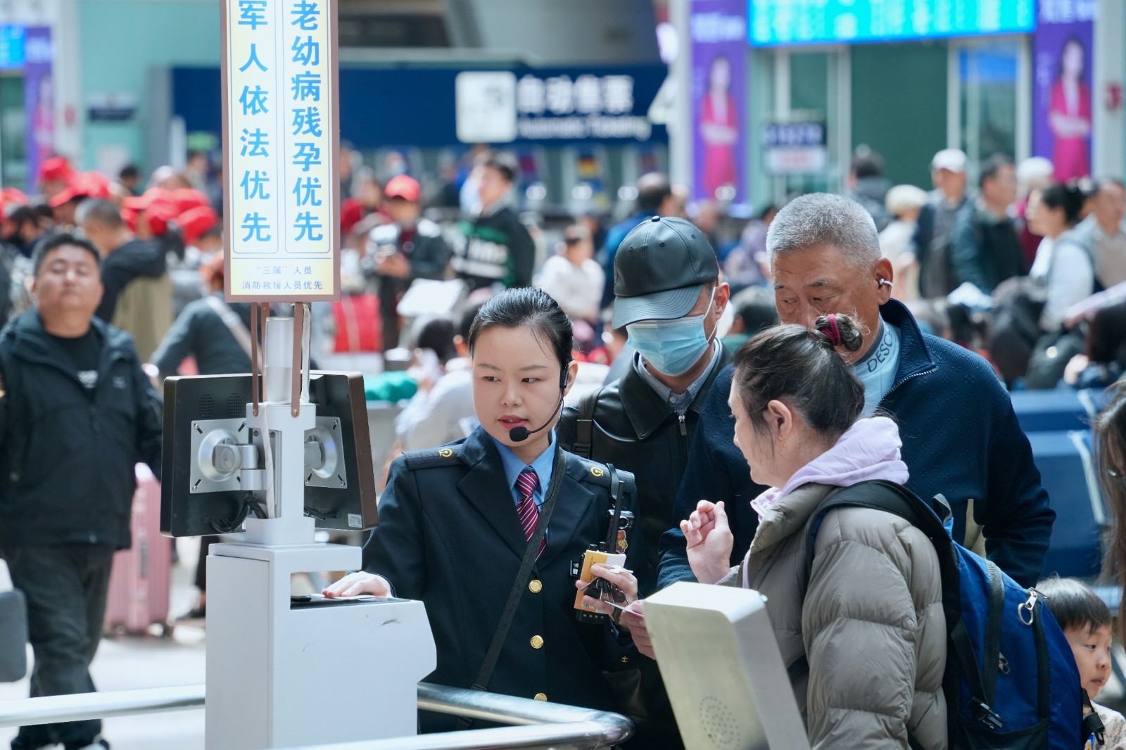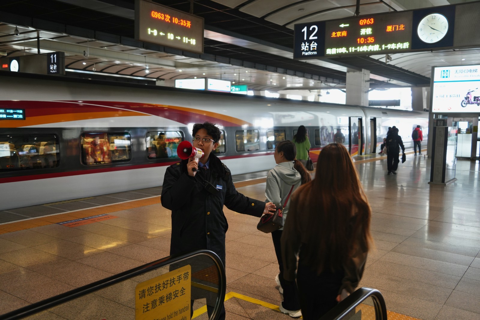 5. 在旅途中,请看护好随行的儿童、老人等重点人群,看管好随身携带的行李物品,确保人身和财产安全。上下车时,注意站台和列车之间的缝隙;乘坐电扶梯时,请站稳扶好,注意脚下安全。倡导安全、有序、文明的旅途,共同营造平安温馨美好的出行环境。