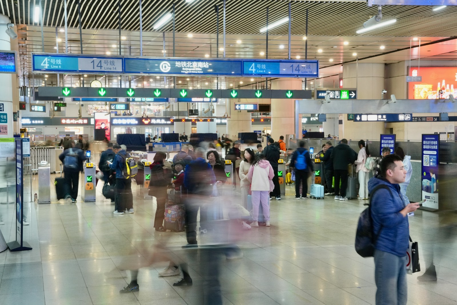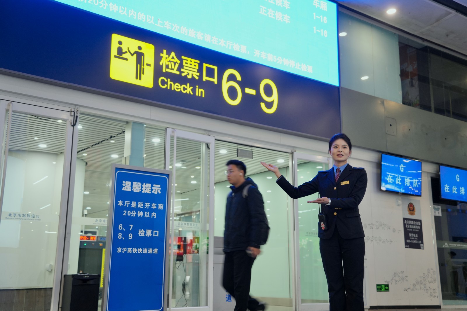 车站合理设置进站流线,地下一层京沪高铁、京津城际4个快速进站厅常态化开启,与车站运营时间相同,同时在各进站口为开车前15分钟内的旅客提供“急客通道”,更加方便旅客快速便捷进站乘车。更新站内标识揭示,全面巡检设备设施,持续优化候乘环境,让旅客出行更安心舒心。发挥“京铁爱心”品牌作用,加强服务力量,升级母婴哺乳室,为老幼病残孕等重点旅客提供从购票、进站、候车、乘车、到站的全流程帮助,让爱心服务“一帮到底”。车站还组建党员突击队、疏导专班等,安排专人在进出站口、电扶梯、服务台、快速进站厅、停车场等重点部位,加强解答问询、宣传引导、安全盯控、爱心帮扶等,让旅客体验更美好。