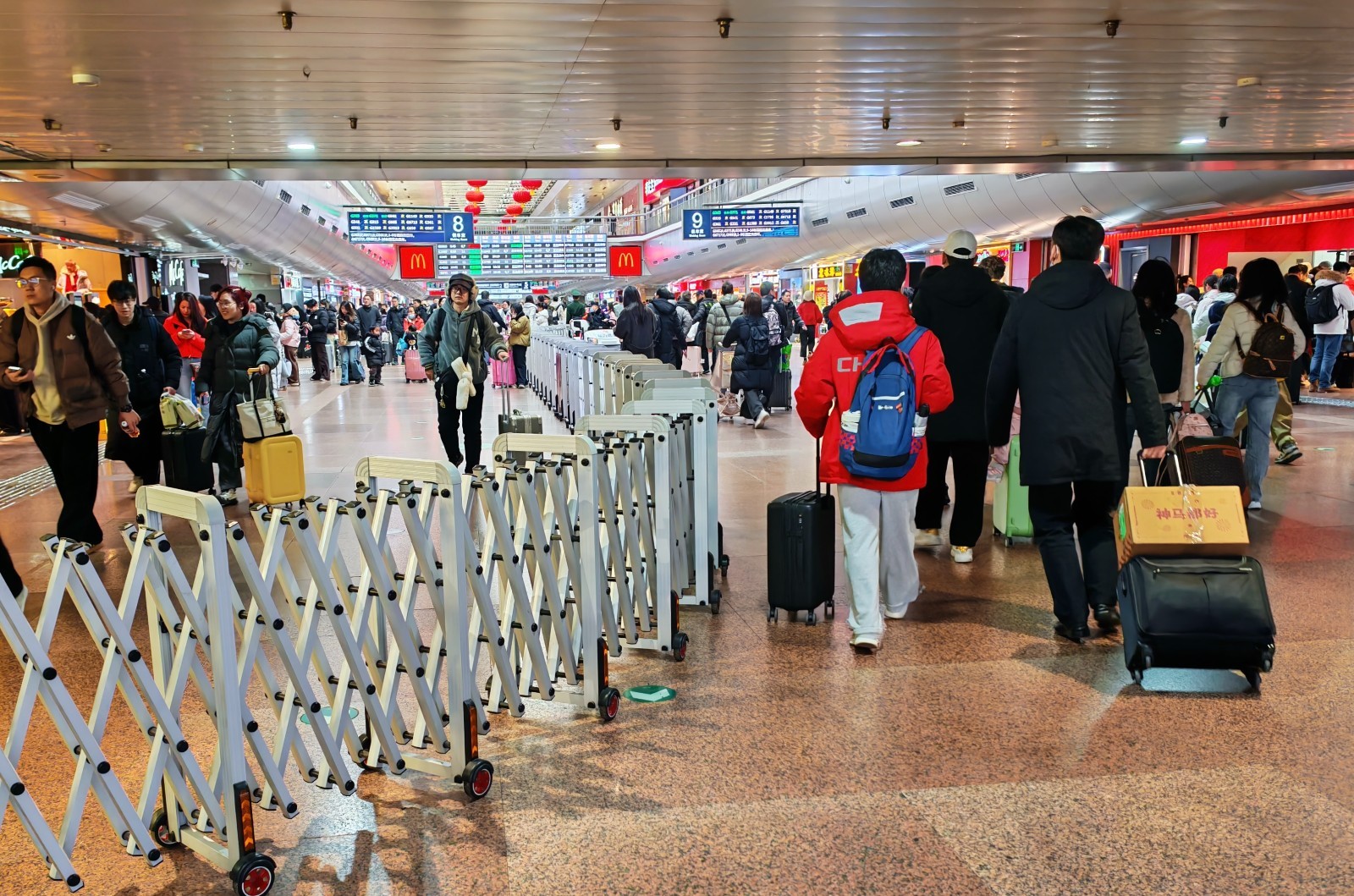 今天(2月15日)是春节假期第一天,北京各大火车站内年味浓郁,不少旅客正踏上坐火车回家的旅途。当日,北京西站预计发送旅客22.8万人次,加开临时列车26列。