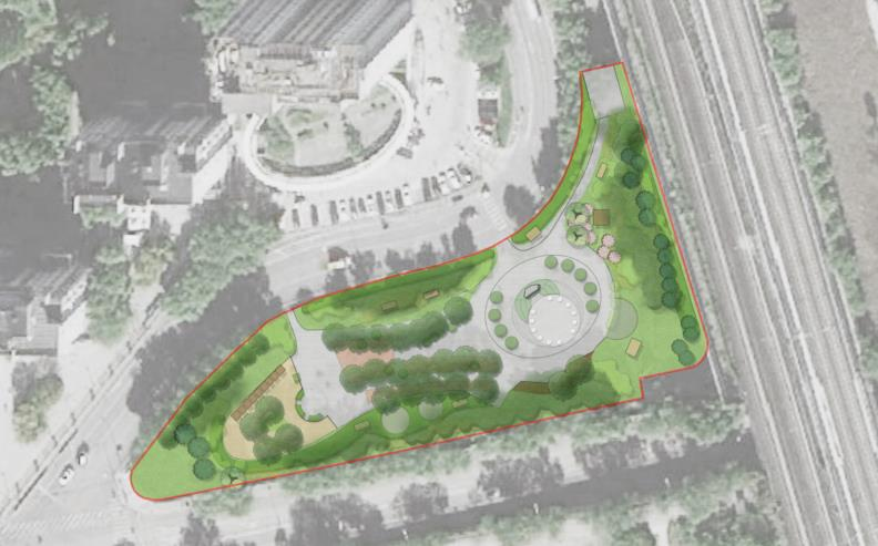 项目根据周边道路,在公园东北侧和西北侧设置两个入口的基础上,在场地东南角新建次入口,方便居民顺畅进出;公园在通道处设计无障碍坡道,使场地达到全龄使用标准,并形成合理排水坡向;西南角结合地形设置挡墙营造街角景观;公园丰富绿地植被,保留原有植物,添置开花亚乔木,将街角绿地变身为地区核心交通动线上的高品质公园。