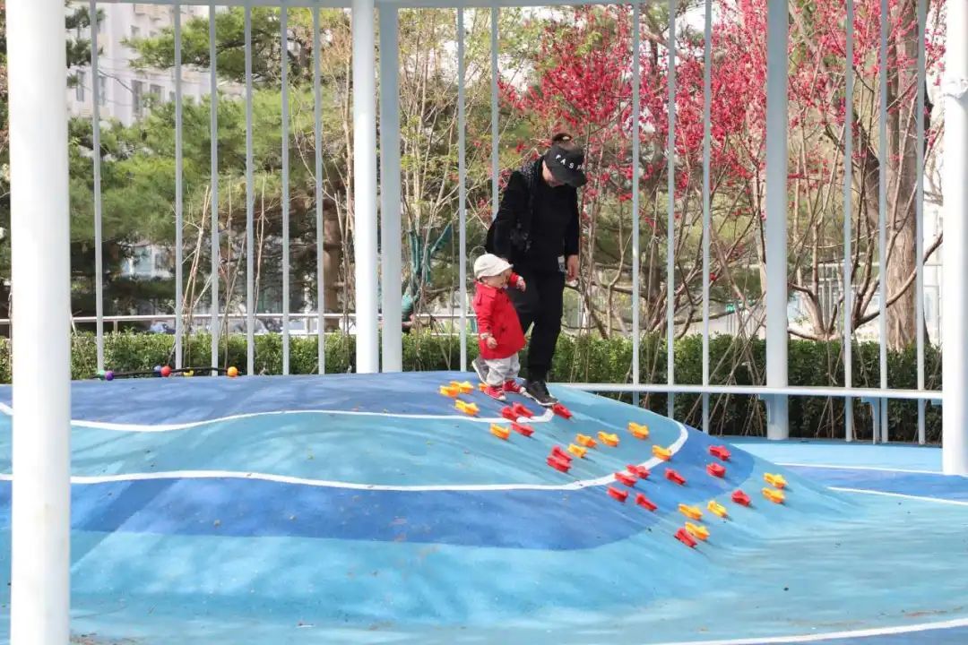 “此次改造,延续了爱之园爱的主题。从拆除护栏开放绿地,整合交通增开公园入口,优化布局重塑林下休憩场景,增设环形廊架打造儿童乐园……使这里成为集娱乐、健身、亲子互动于一体的、能够满足辖区不同年龄段居民需求的多功能休闲空间。”上地街道责任规划师高洁介绍。