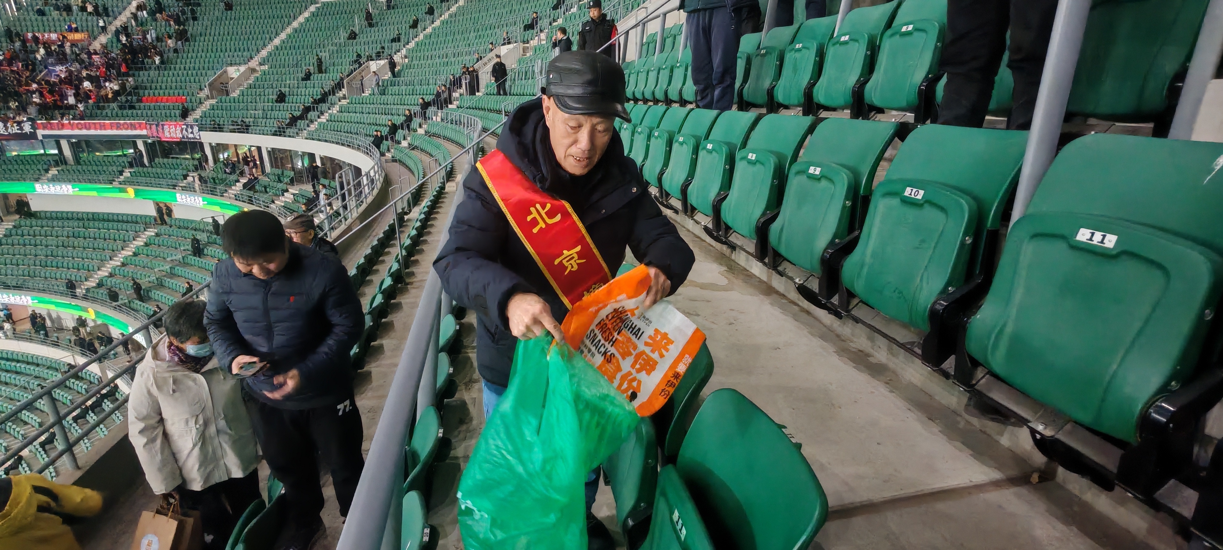 最终,北京国安以5:1击败梅州客家,为球迷献上一场精彩的胜利。比赛结束后,当大部分观众有序离场时,榜样代表们却拿起提前准备好的垃圾袋,弯腰捡拾看台上的纸屑、饮料瓶等垃圾。他们的举动带动了周边数十位球迷主动加入捡拾队伍,原本散落着杂物的看台很快恢复了整洁。不少年轻球迷表示:“榜样们用行动告诉我们,文明不是口号,而是举手之劳的坚持。”