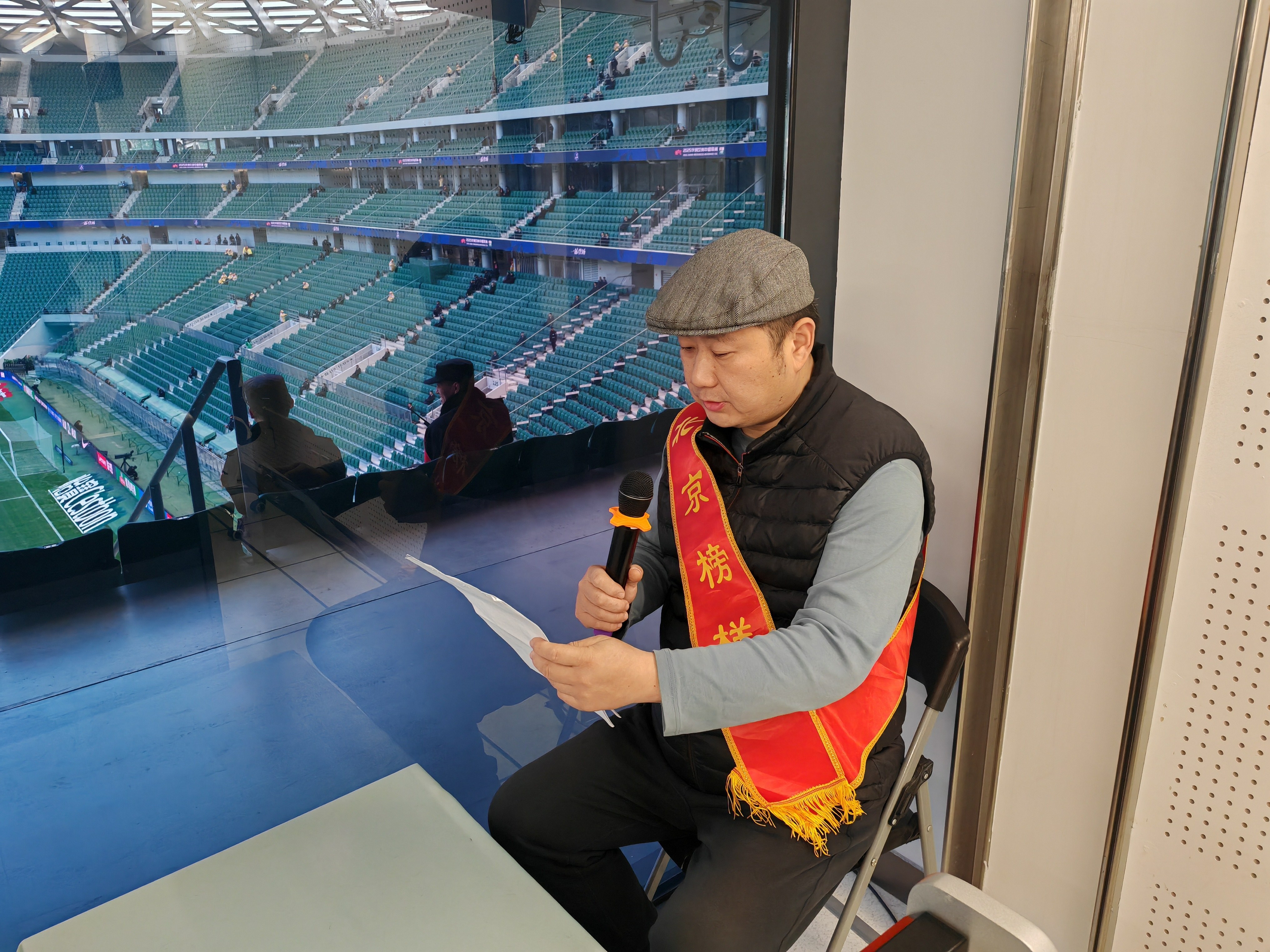 赛前的球迷故事播报环节,由2024北京榜样任晨阳进行播报。他的发言简洁有力,瞬间点燃全场热情。