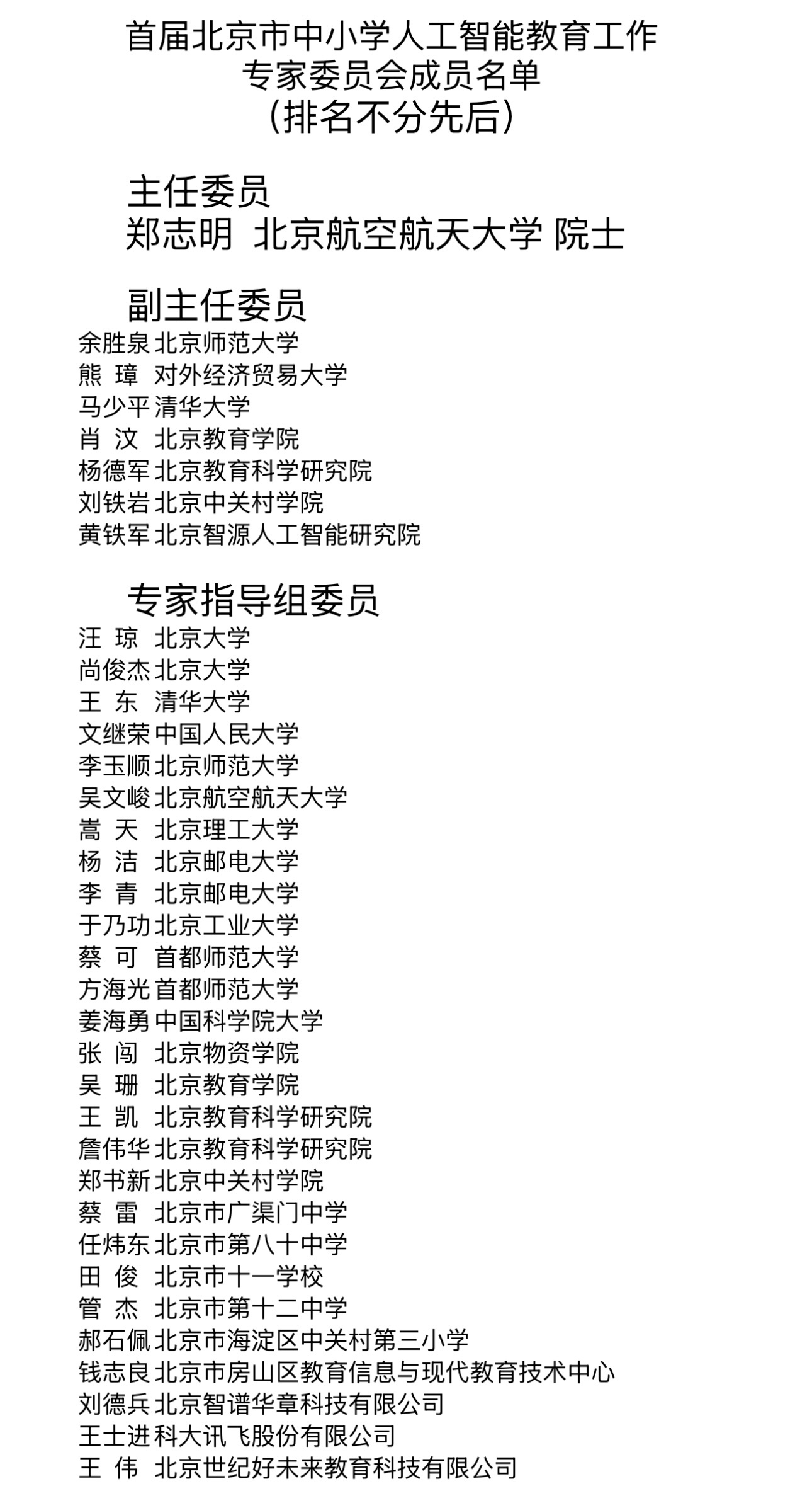 (记者 白雪微)今天(8月25日),北京市教委发布《北京市教育委员会关于成立首届北京市中小学人工智能教育工作专家委员会的通知》,决定成立首届北京市中小学人工智能教育工作专家委员会(简称“委员会”)。