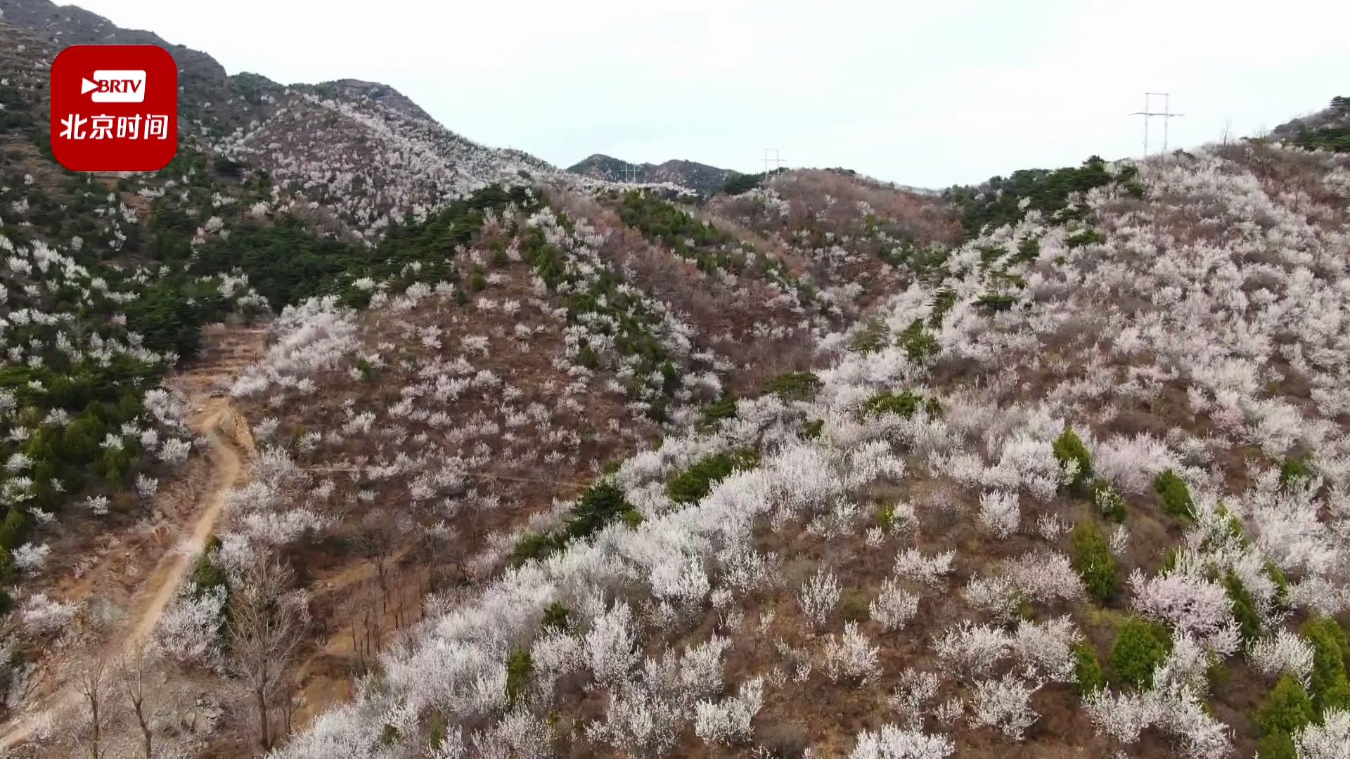 山区方向,春景同样惹人沉醉,天朗气清一处一景,粉红的、洁白的山桃、山杏随山势绵延起伏,犹如朵朵白云穿梭山野,与雄伟的长城交相呼应。