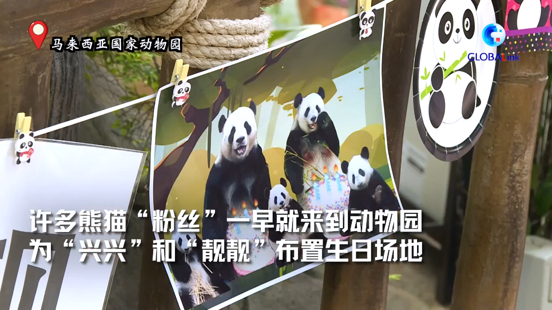 生日会上,记者见到了来自拉曼理工大学的图书管理员方楚云。作为资深粉丝,她身着大熊猫图案的上衣,还戴着大熊猫图案的口罩和大熊猫耳朵样的发箍。方楚云兴奋地对记者说:“我今天特意请假过来给‘兴兴’和‘靓靓’庆祝生日,还特意做了一张它们五口的全家福,挂在那儿了。”