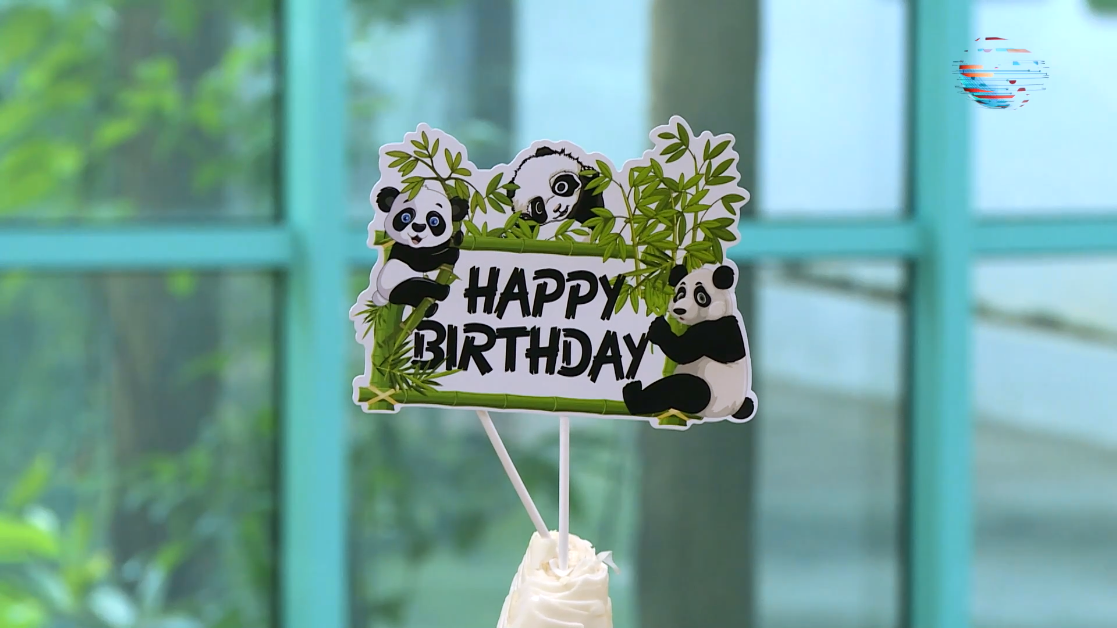 方楚云和朋友们组成的大熊猫粉丝团,一大早就带着各种装饰品来布置现场——围栏上挂满“兴兴”和“靓靓”的合照以及带有中英文“生日快乐”字样的卡片,灯柱上是大熊猫形状的气球,游客们还能拿到粉丝团制作的大熊猫照片和徽章纪念品。