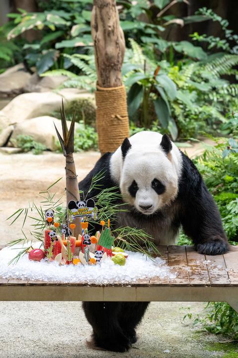 在马来西亚国家动物园大熊猫保护中心内,中国旅马大熊猫夫妇“兴兴”和“靓靓”23日迎来了16岁生日。