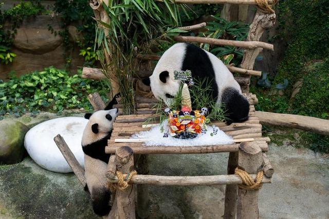 8月23日,在马来西亚国家动物园大熊猫保护中心内,中国旅马大熊猫夫妇“兴兴”和“靓靓”迎来了16岁生日。
