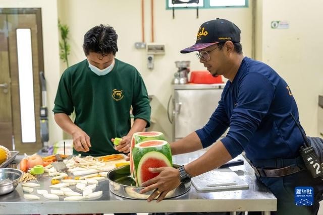 8月23日,在马来西亚吉隆坡附近的马来西亚国家动物园,饲养员为大熊猫“兴兴”准备生日大餐。新华社记者朱炜摄