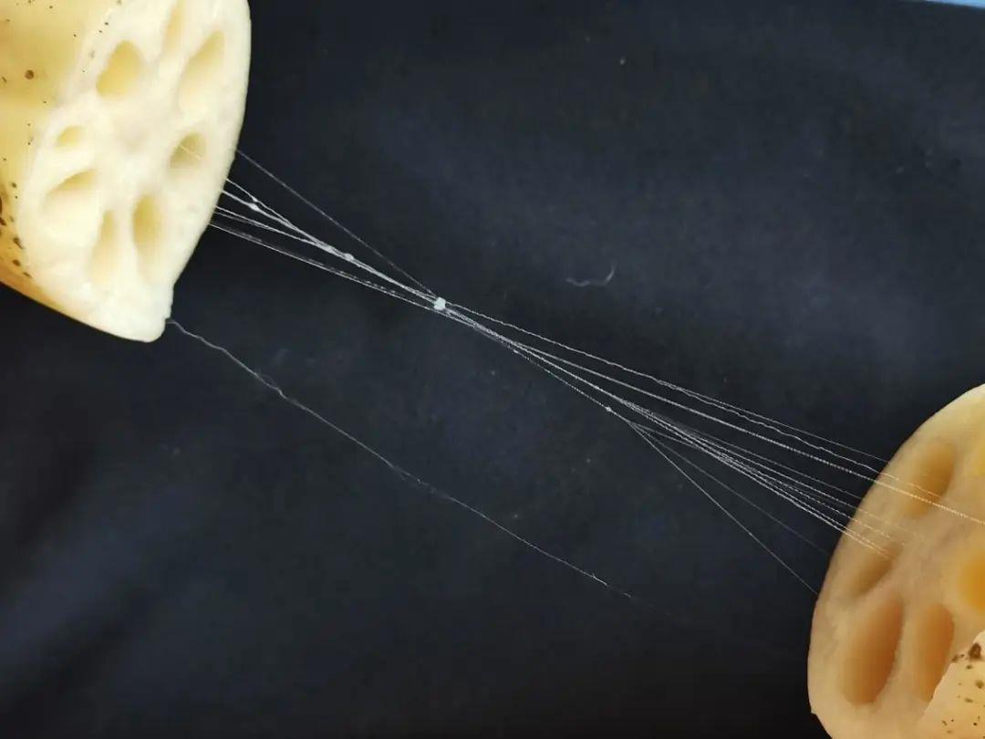 掰开后的莲藕会出现藕断丝连的现象,莲藕的拉丝和山药的拉丝不同,山药的拉丝是黏液导致的,但莲藕的拉丝不是黏液,而是莲藕内部运输组织中螺旋状导管的导管壁(环状管壁),当莲藕被掰断后,导管壁会像弹簧一样被拉长。