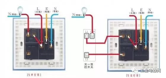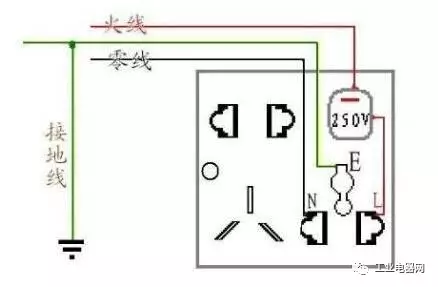 这样一旦发生零线断线时,相线的电压通过用电设备引至工作零线的左插孔,再由连接线传到设备的外壳上,使触及设备外壳的人员触电,因此,必须严格遵照正确接线方式,安装三孔插座。