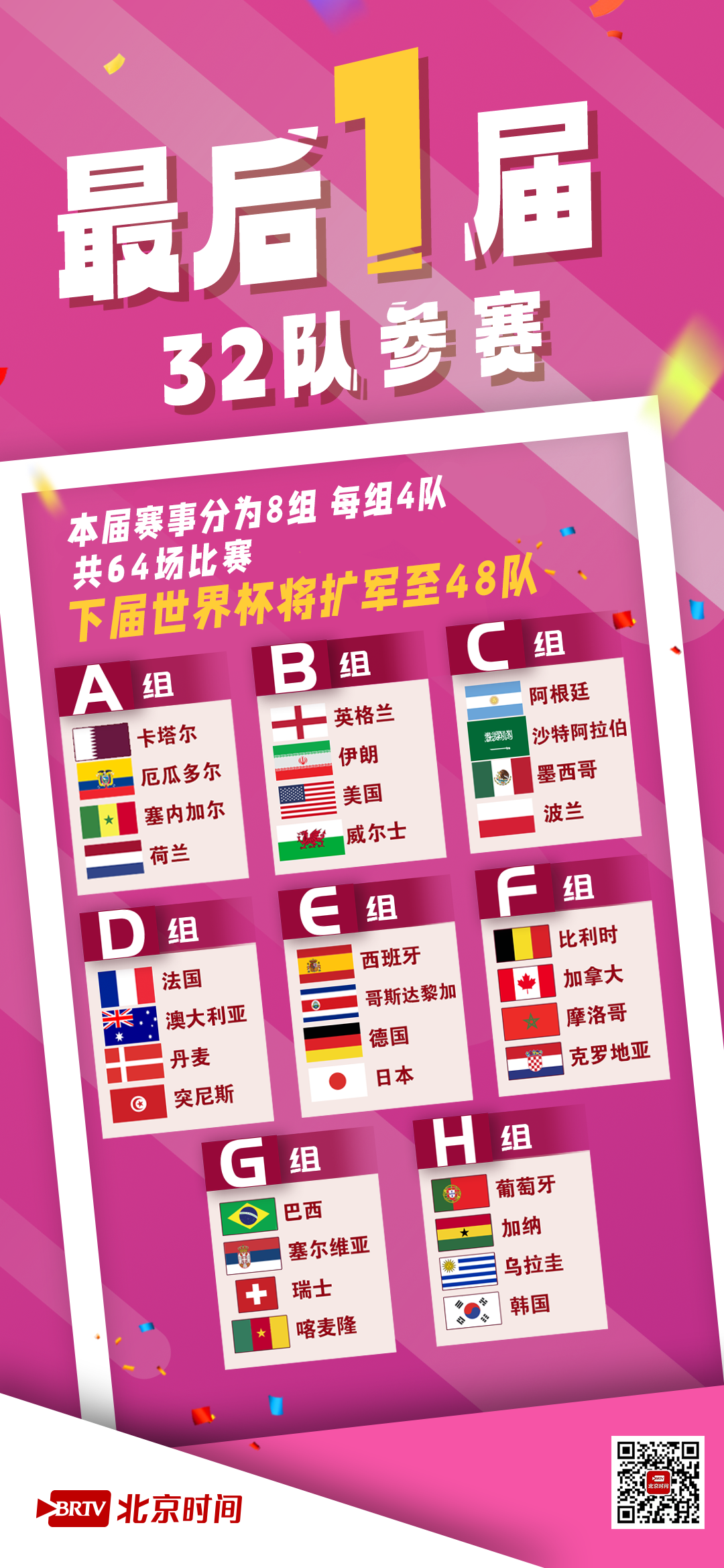 北京时间今晚11点,全球瞩目的卡塔尔世界杯将正式揭幕,世界杯时隔20年重返亚洲!世界杯的吉祥物,为啥戏称“馄饨皮儿”?梅西、C罗真的是“最后一舞”?有多少“00后”球员登场世界杯?本届世界杯,多个史上首次将在卡塔尔诞生!点击收藏海报,get世界杯8大看点→(编辑 | 勇方方;设计 | 杨璐;主编 | 杨凤临 王鹤霖)