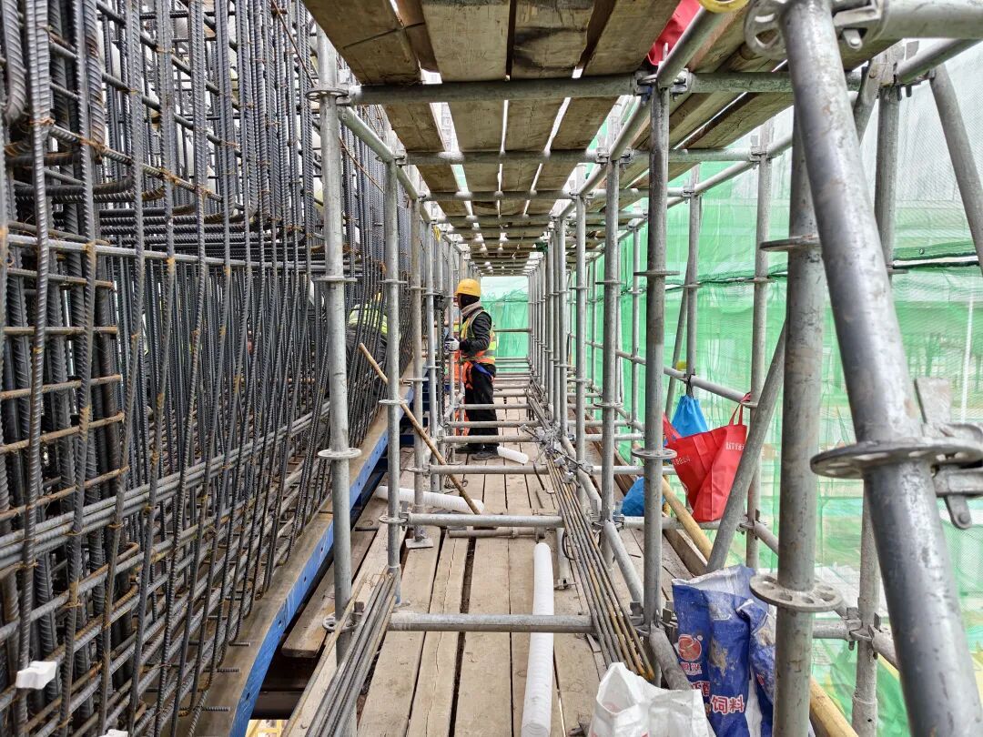 与此同时,安立路(科荟路-北六环)快速化改造工程5标段也在紧锣密鼓建设中。在立汤路川流不息的南北车流之间,一座座高大的桥墩拔地而起,施工人员坚守岗位、各司其职,有条不紊地开展钢筋焊接、建材吊装等作业,全力推进主线桥桥梁结构施工。