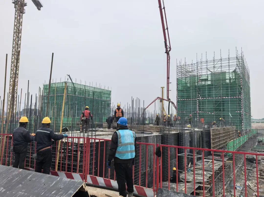 2月26日,南邵镇龙湖恩祥・凌雲颂项目施工现场一派热火朝天的忙碌景象。这里塔吊不停轮转、机器轰鸣作响,运输建筑材料的车辆往来穿梭、有序衔接,300余名工人在主体结构施工一线紧张有序地开展建筑基础施工作业,项目内会所、庭院等配套设施已初具雏形。