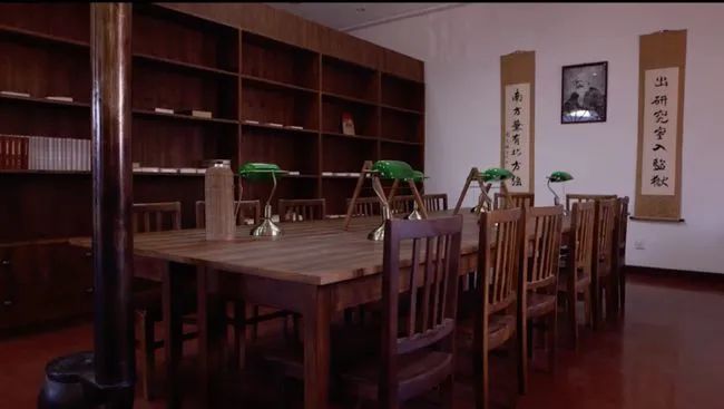 ▲存放马克思主义的书籍的“亢慕义斋”遗址“亢慕义斋”内,四壁贴有革命诗歌、箴语、格言,正中墙壁挂有马克思像,两侧贴着一副对联——“出研究室入监狱...