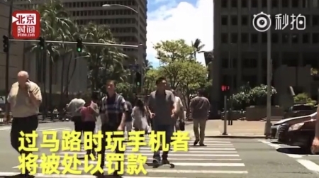 位于美国夏威夷的檀香山,近日就通过了一项新法案,成为全球首个立法禁止过马路玩手机的城市。