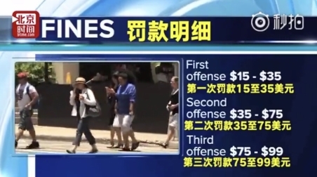立法中明确规定初犯者会被罚款15至35美元,再犯者将会被罚款75至99美元。