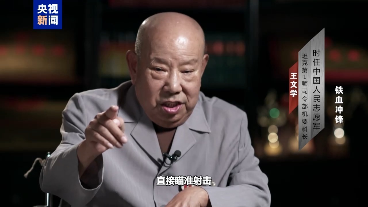 时任中国人民志愿军坦克第1师司令部机要科长 王文学:我们也对准敌人的碉堡,直接瞄准射击,打得也特别痛快,一炮一个。