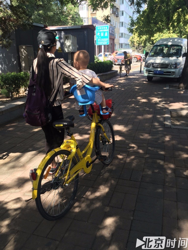 事情发生在9月7日,当时张女士在三元桥地铁站出来,步行至三元里社区东门附近时,见到人行便道上有一个年轻妈妈正推着小黄车,而这辆小黄车有些与众不同,它前面装了一个便携式的塑料儿童座椅,一个约一岁大的小孩坐在里面。张女士说,当时这位推着车子的妈妈正和朋友聊天,后来二人走远一些后,这位妈妈就骑着这辆“改装”过的小黄车走了。