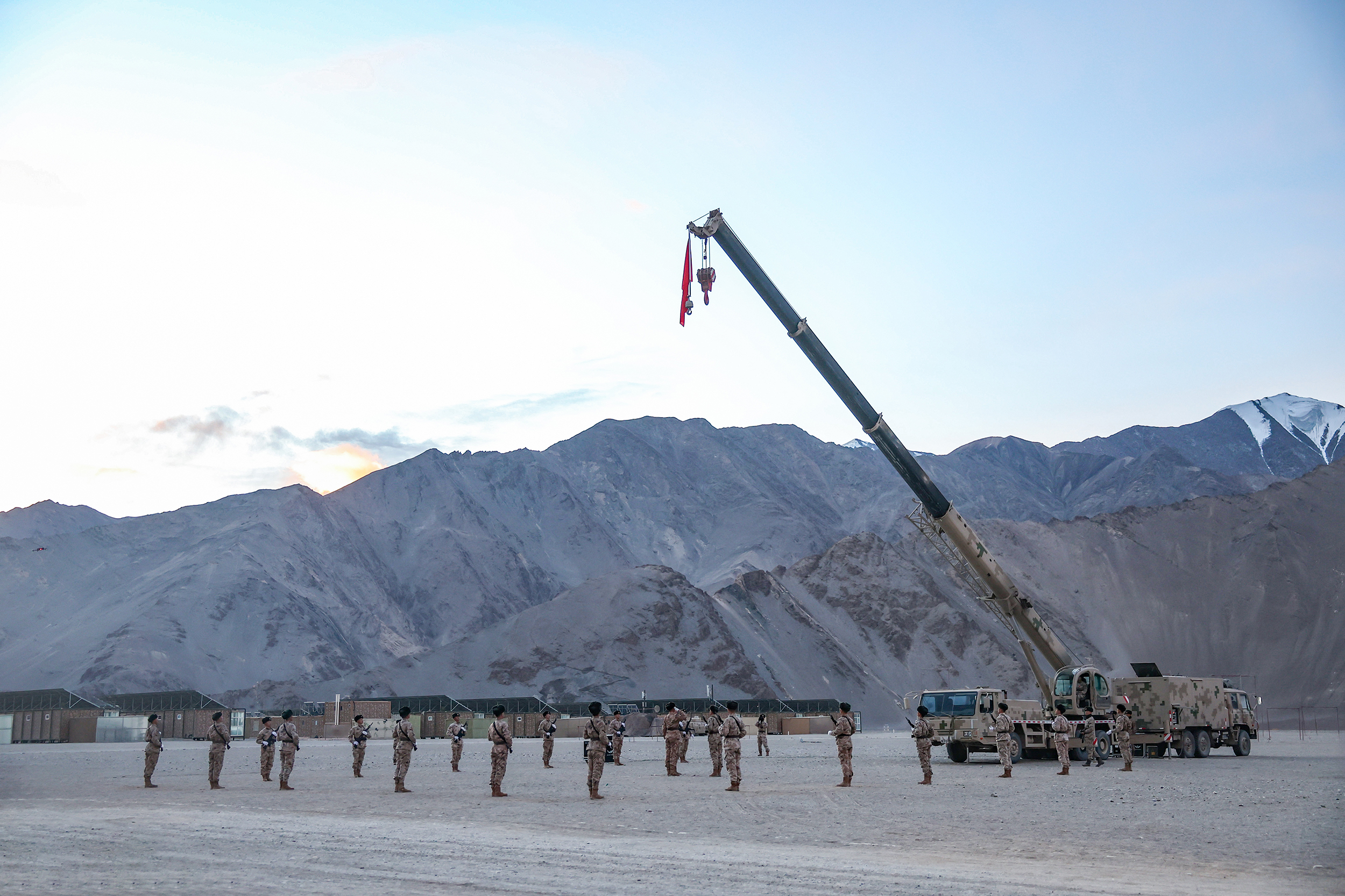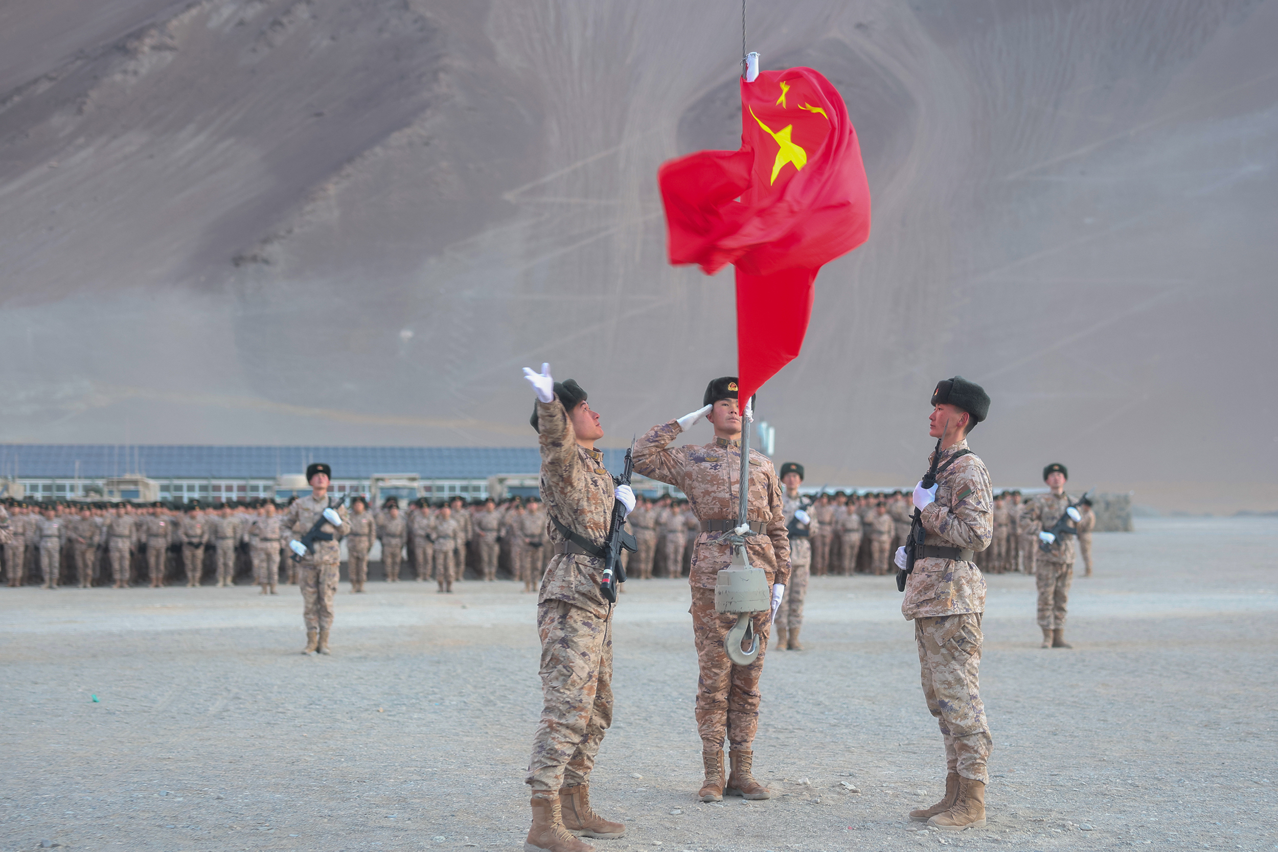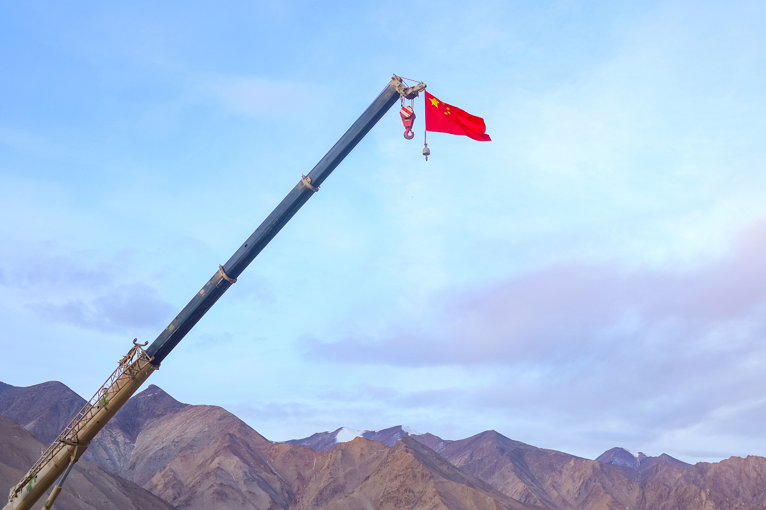 海拔4000余米雪域高原 边防战士用吊车升起五星红旗国歌声响彻山谷