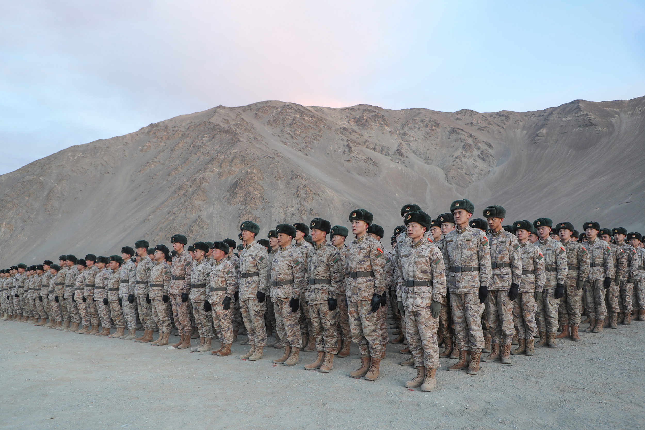 据了解,官兵们经过数次对吊升速度、高度进行的针对性训练,确保了国庆节这天五星红旗在雪域高原上如约升起。雄壮的国歌声中,鲜艳的五星红旗冉冉升起,迎风飘扬。全体官兵向国旗致以最崇高的军礼,表达对祖国的深深祝福。