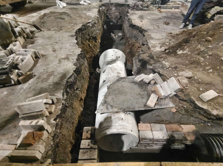 此次工程新建雨水井1座,安装雨篦子1套,新增600管径水泥管23米,波纹管4米,截至目前已完成全部工程。