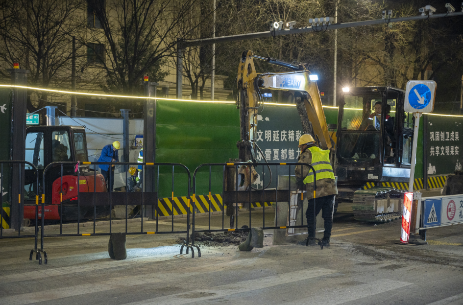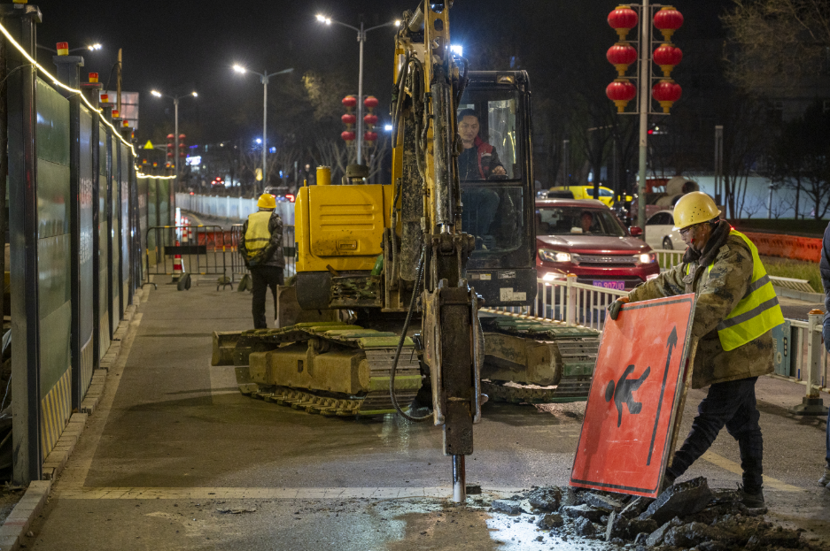 “设置施工围挡,锯缝,破拆路面,铺设水泥管,回填,恢复路面……”11月20日晚上9点,在湖南路口积水点改造施工现场,市政工人正在紧张有序地忙碌着,为不影响群众日常出行,改造工作在晚上进行,这一忙就持续到次日6点。
