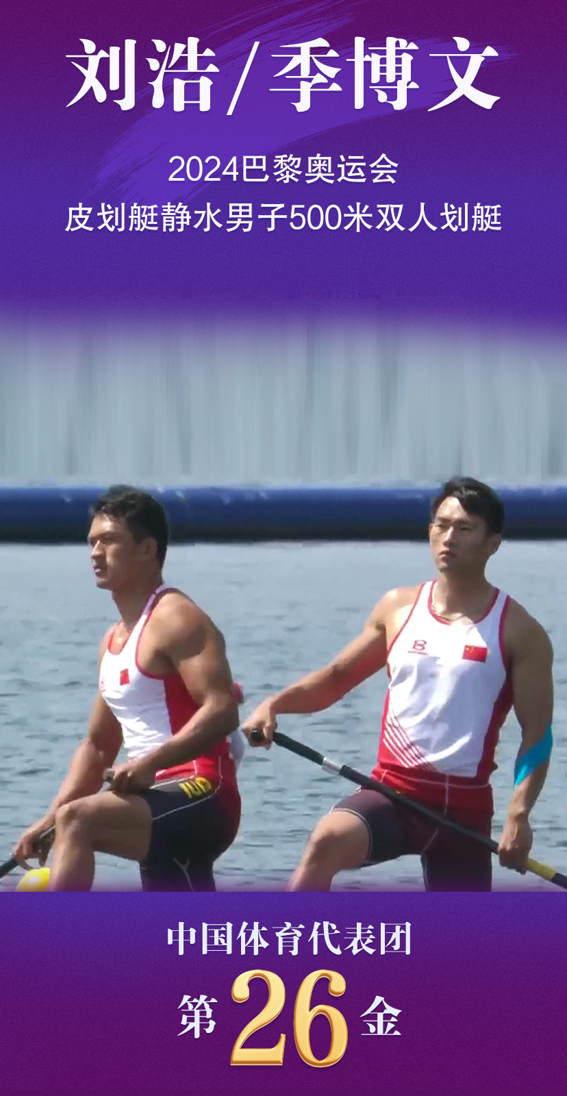 北京时间8月8日,在巴黎奥运会男子500米双人划艇决赛中,中国组合刘浩/季博文夺得金牌。这是中国代表团在本届奥运会获得的第26枚金牌,也是中国代表团在本届奥运会皮划艇项目上的首枚金牌。