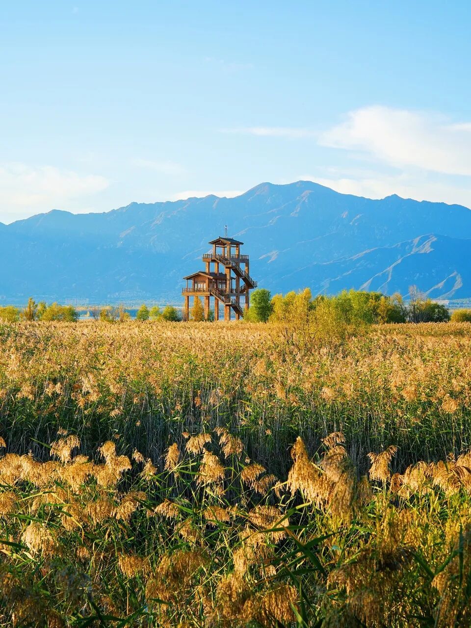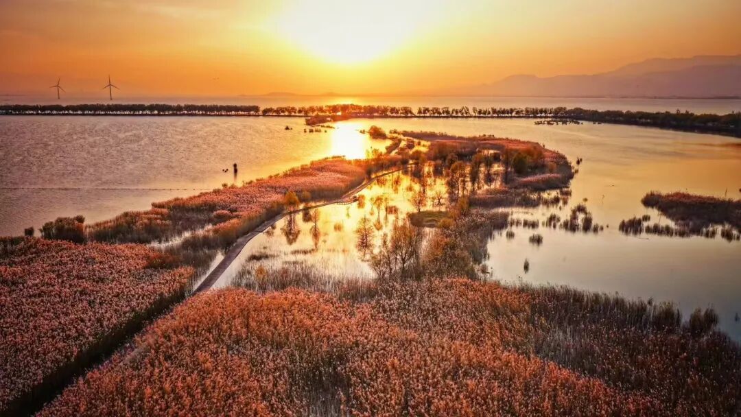金芦与蓝湖相映