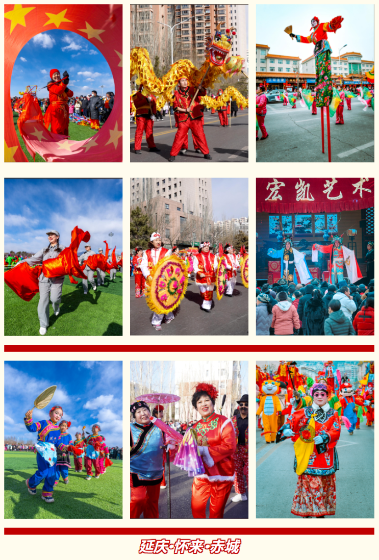 乙巳新春,长城内外热闹非凡,人们唱欢歌、看花会、庆团圆.......在古老的城垣下,演绎着一出出精彩的文化盛宴。延庆、怀来、赤城三地,宛若镶嵌在京张文化版图上的三颗明珠。在元宵佳节,绽放出了别样的光彩。来~来~来~小编今天整点儿有趣的,带您看看今年元宵节花会展演中,延怀赤三地“神仙打架”名场面~走~