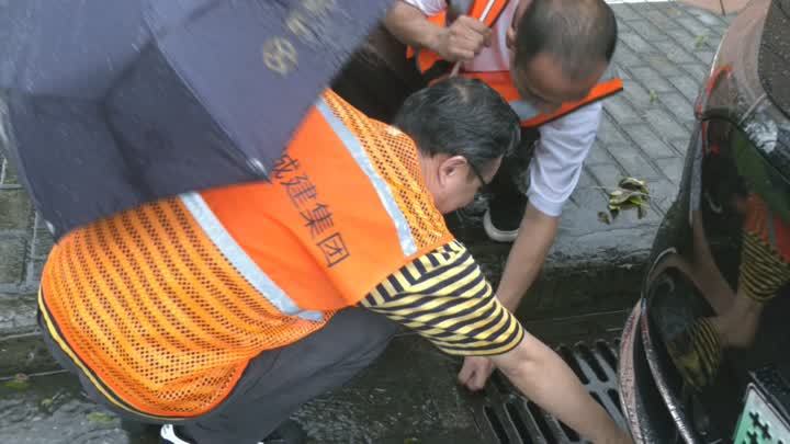 一早,在文昌中路与双桥路交叉口,正在值守的市政设施管理处工作人员李俊,发现雨势渐大,立即带着队员冒雨打开窨井盖,将抽水泵放入井中助排。作为排水防涝一线的“老兵”,他和36名党员同事组成突击队,带领16个班组驻守市区14个易积水点,从雨前排查到雨中值守,全天候守护道路畅通。