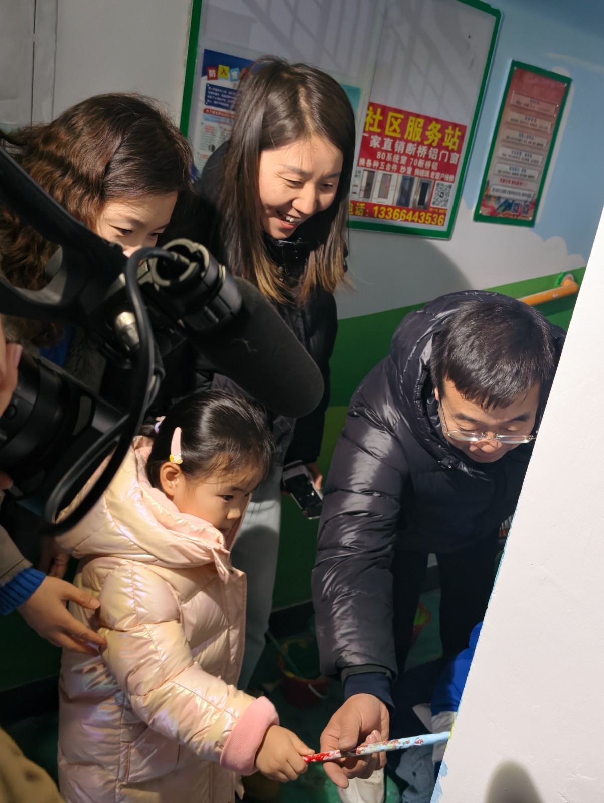 这场楼门美化行动,带来的远不止环境的变化。“这朵鲜花我调了最艳的红色,就想让咱们楼门看着喜庆!”作为彩绘小队的“技术担当”,李大爷的成就感溢于言表:“现在邻居路过都要夸两句,还有人来请教技巧,楼门变美了,我还收获了这么多‘知音’。”党员代表袁金芝的感触更深:“刚开始还担心大家积极性不高,没想到一号召,老人孩子都主动报名。有个小朋友不小心把颜料蹭到衣服上,妈妈还乐呵呵地说‘这是孩子参与家园建设的纪念章’。看着邻里从陌生到熟悉、从客气到热络,这种发自内心的自豪感,是什么都换不来的。”一面墙,成了一座桥,连接起一扇扇紧闭的房门。居民从社区的“旁观者”,变成了共同创作的“家人”。