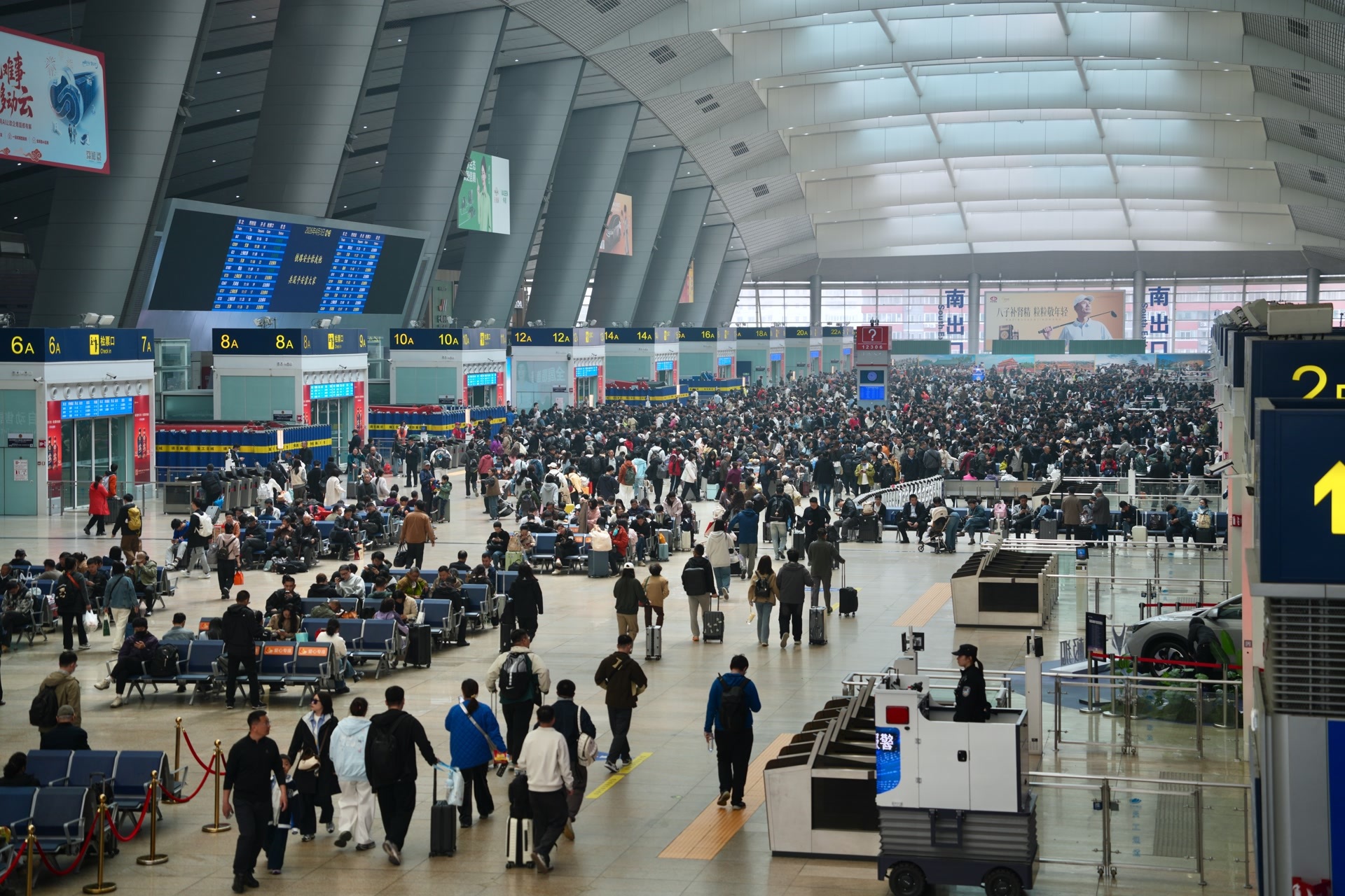 北京西站统筹安排运力,在候车室、站台、出站口等关键区域增强盯控、引导和服务力量,认真做好“老幼病残孕”重点旅客接待、站内便捷换乘、空铁联运和交通接驳等针对性和便捷化的特色服务,进一步为旅客打造优质的假日出行体验。