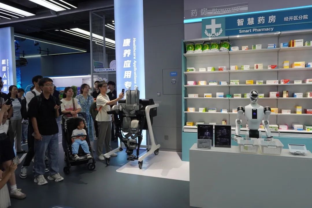 走进占地4000平方米的具身智能机器人4S店,仿佛步入未来世界。这里陈列着人形机器人、康养应用、行业应用、机器人演示、家庭应用五大主题展销专柜,汇集了50余家机器人厂商的70余项产品。在这里,人们不仅能近距离观察各类机器人,还能亲身体验人机互动的乐趣:观看紧张刺激的机器人足球赛,欣赏机器人精准地投篮表演,与仿生机器人“爱因斯坦”对话,与活泼可爱的机器狗互动嬉戏……
