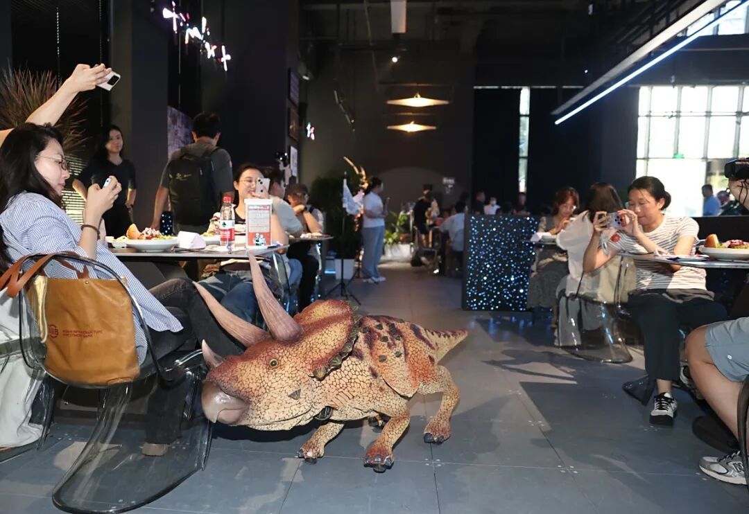 餐厅里,仿生人形机器人“小柒”和酒保机器人“希尔”热情迎客,恐龙机器人在餐桌间穿梭互动,仿人机器人“李白”和“苏轼”上演别开生面的脱口秀表演,跳舞机器人跟随古典音乐跳起“华尔兹”,还有雕刻机器人、咖啡机器人等带来新奇体验……自8月8日正式营业以来,机器人焰究所单日最高人流量已突破1000人,目前进入常态化运营,日均接待300至400人。在国庆、中秋假期,机器人焰究所还推出节日限定的“玉兔合影打卡”活动,完成任务即可兑换一份精致甜品,为人们带来更多惊喜。