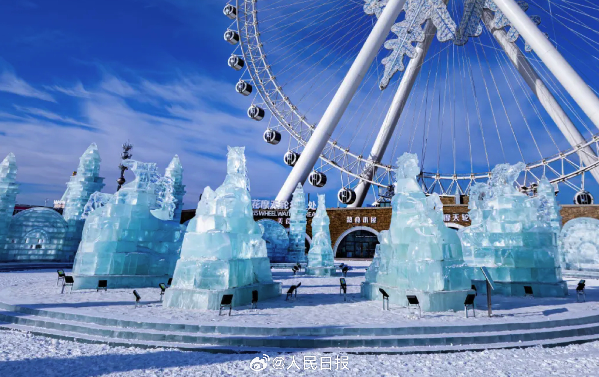 为了迎接即将到来的马年,今年的哈尔滨冰雪大世界有“冰马逐梦”“童话小马一家”“青花瓷系列雪雕”“十二生肖冰雕马”等设计,将传统文化与冰雪艺术融合。