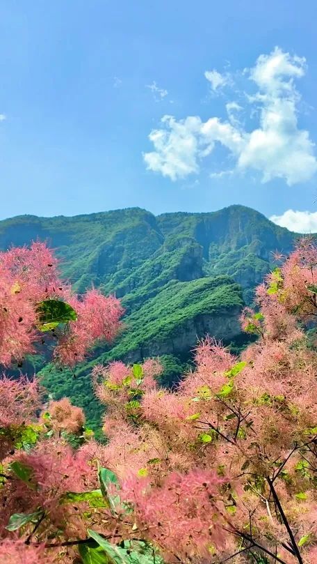 游玩亮点:5月的坡峰岭是黄栌的天下!十万株黄栌新叶正舒展,嫩红与翠绿交织成 “渐变油画”,阳光穿过枝叶洒在木栈道上,随手拍都是电影感画面。山腰观景台视野绝佳,能看到层层叠叠的黄栌像给山体披上粉绿相间的纱衣,比秋日红叶多了份温柔的初夏滤镜~