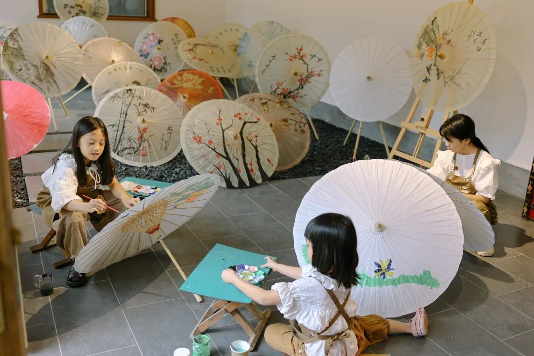 手工DIY:「黄山店非遗体验馆」里可以体验油纸伞、植物扎染、掐丝珐琅彩、建筑搭建、黄栌木片DIY、古法造纸、版画……作品还可带走作纪念。
