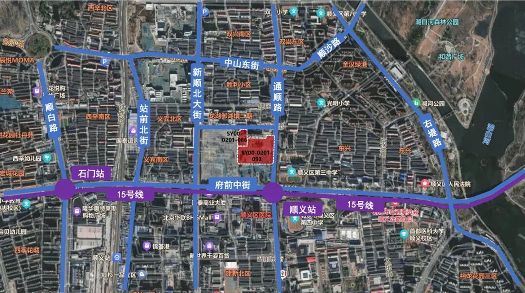 项目位于顺义区东风商场片区核心板块,地理位置优越,东至通顺路,南至东风街(暂定名),西至金街北路(暂定名),北至幸福西街。规划总建设用地面积约41309.86平方米,分为两个地块开发建设:其中SY00-0201-093地块为R2二类居住用地,建设用地面积约36200.50平方米;SY00-0201-086地块为A334托幼用地,建设用地面积约5109.36平方米。