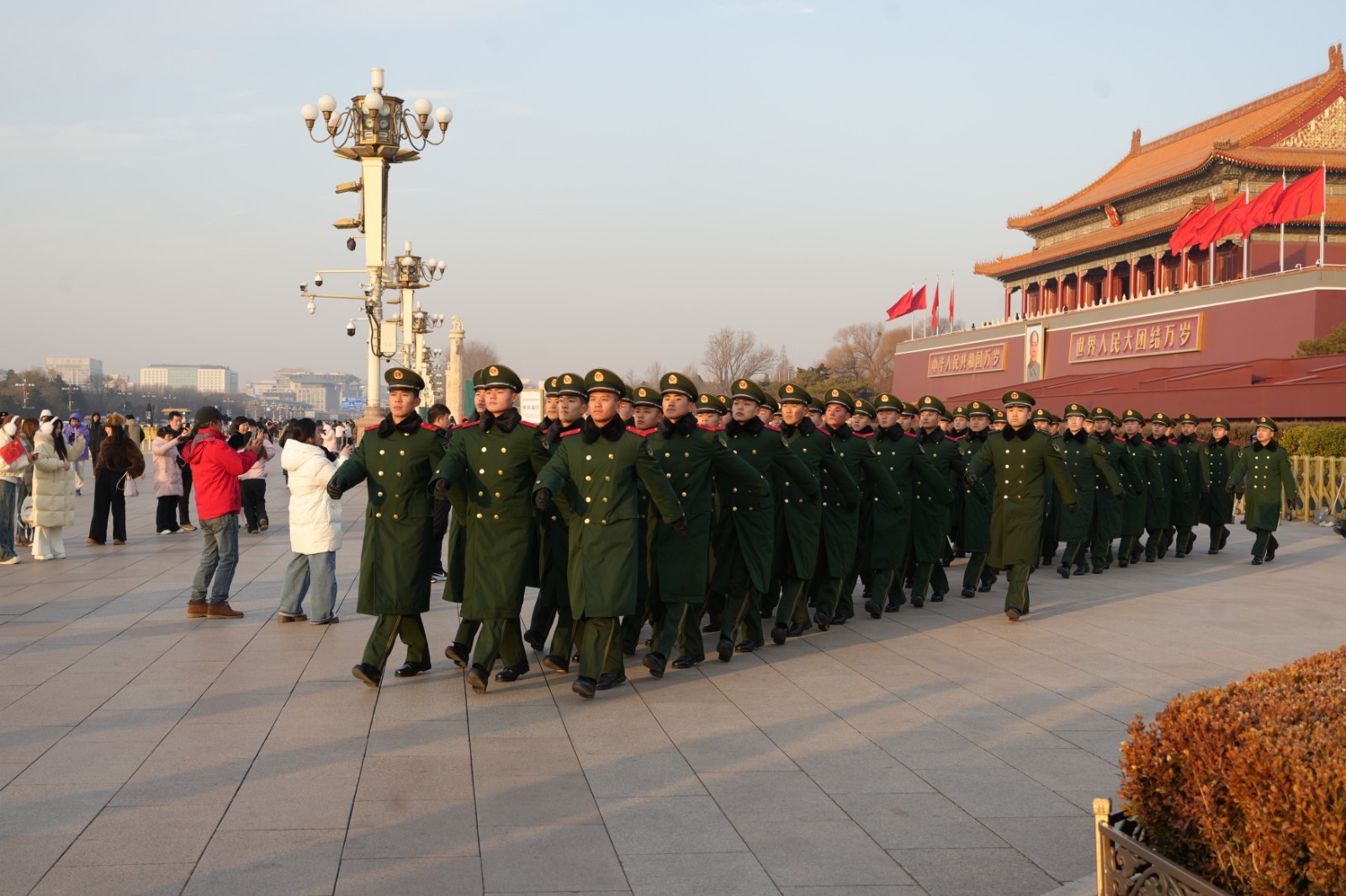 升国旗仪式结束后,新兵们登上天安门城楼。凭栏远眺,长安街上车水马龙,广场上游人如织,国泰民安的繁荣景象尽收眼底。凝望着庄严肃穆的城楼,历史的厚重感扑面而来,新兵们的眉宇间满是坚定。