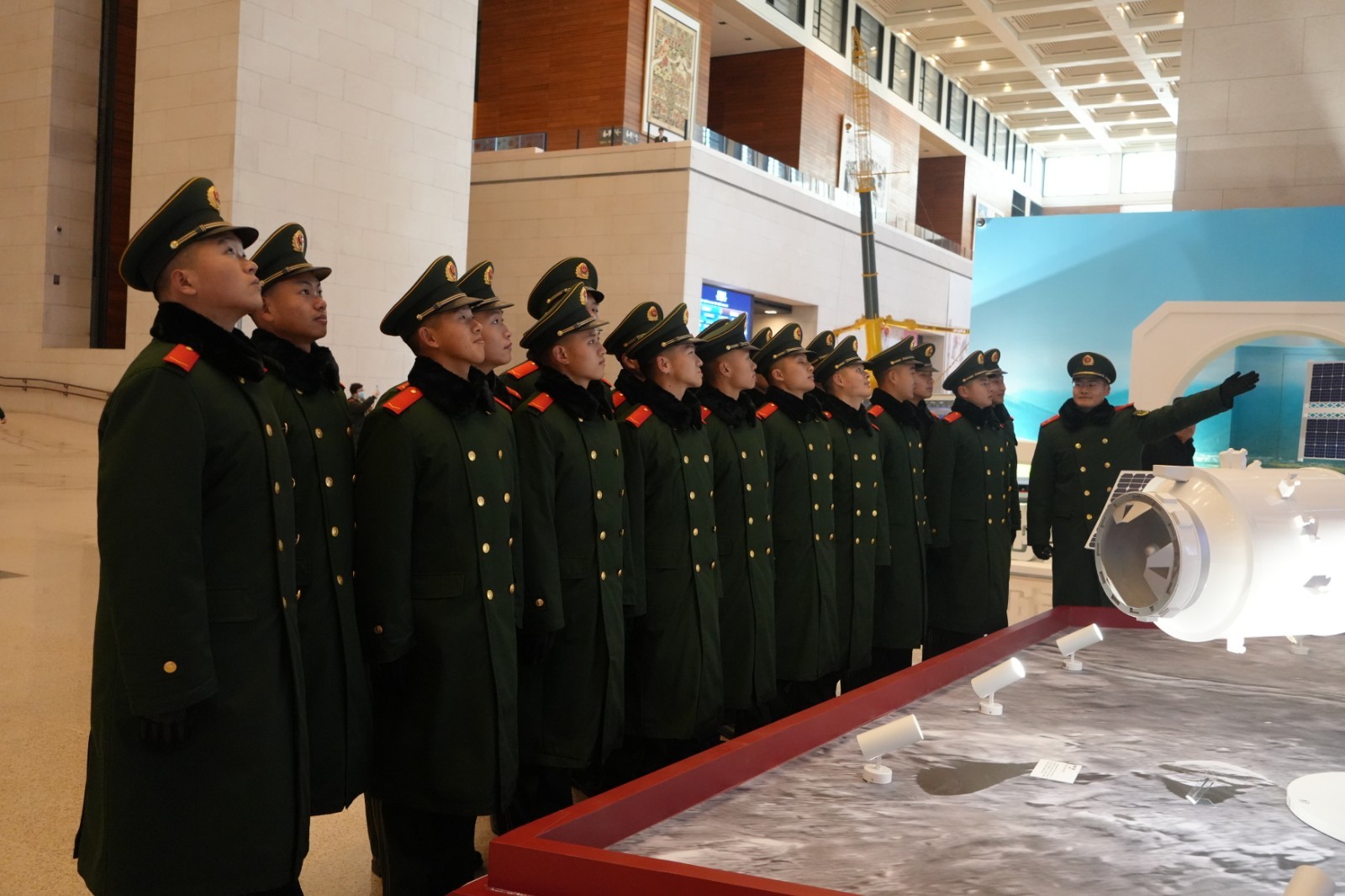 随后,新兵们走进国家博物馆“筑基强国路——中国制造‘十四五’成就展”,大国重器、前沿科技成果轮番亮相,令人心潮澎湃。新兵沈博阳一边看着航天探测器模型,一边难掩激动:“这些国之重器太震撼了!祖国的强大让我骄傲,也让我更坚定要练好本领,守护好这份繁荣!”