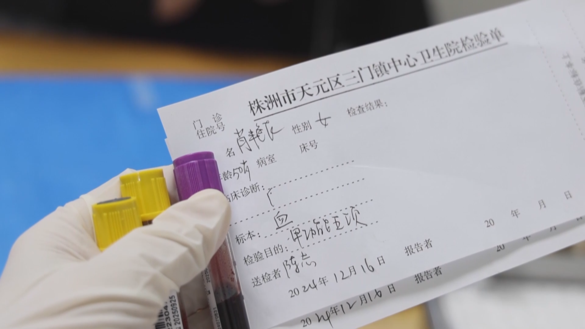 湖南省株洲市天元区三门镇上节街群众 肖艳飞:现在在三门镇中心卫生院就能抽血,送到株洲中心医院(检测),省事又省时间,在家门口就能享受到三甲医院的服务。